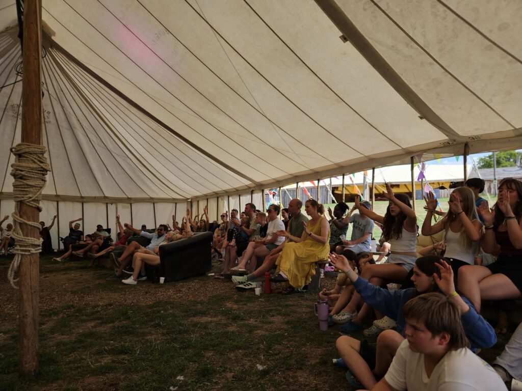 There is a large camping field suitable for tents, campervans, and caravans. We will be arranging glamping hire options too. The campsite will have cooking facilities, showers, toilets, and a limited number of electrical hook-ups. You can arrive from Monday (at additional cost) but the entertainment starts on Friday. We’ll have a big group BBQ on Sunday and the entertainment finishes at middnight. We’ll head home after brunch on the Bank Holiday Monday – there’s no rush though!